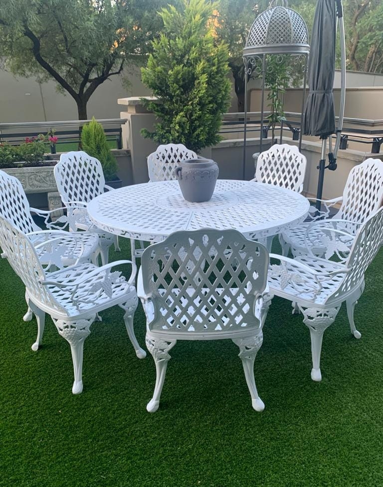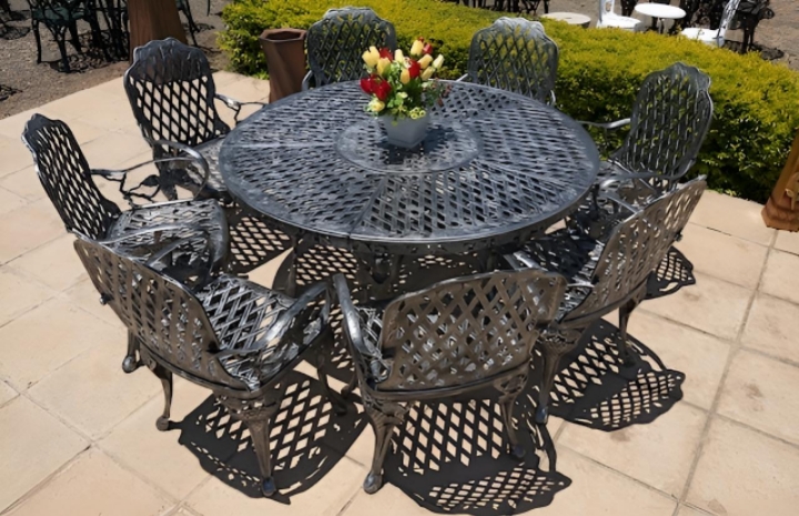 Whether entertaining guests or enjoying quiet moments outdoors, the King Grape Patio Set provides an inviting backdrop. Its flowing, floral design and regal presence create a sophisticated outdoor space.